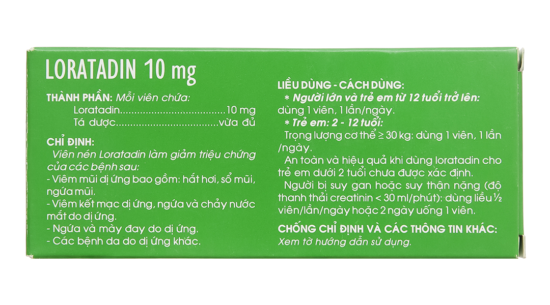 Công dụngTrị viêm mũi dị ứng, dị ứng da, mày đay