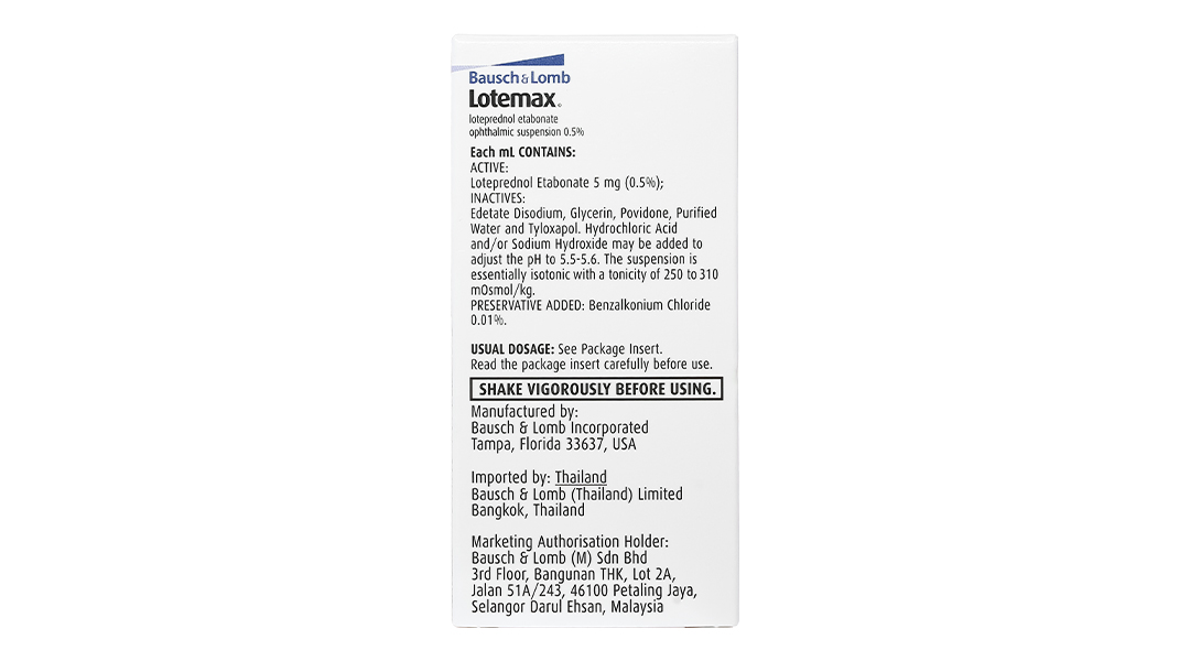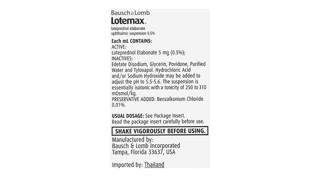 - LOTEMAX (hỗn dịch nhỏ mắt loteprednol etabonate 0,5%) là dạng thuốc vô trùng dùng để tra mắt có chứa một loại thuốc chống viêm corticosteroid dùng ngoài.