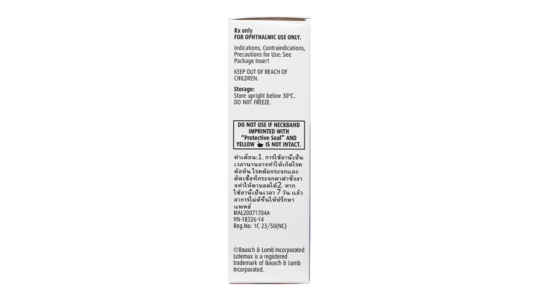 Thông tin cho bệnh nhân: Sản phẩm đóng gói vô trùng. Khuyên bệnh nhân không để đầu nhỏ giọt chạm vào bất kỳ bề mặt nào vì có thể gây tạp nhiễm hỗn dịch. Nếu thấy mắt đau, đỏ, ngứa hoặc tình trạng viêm trở nên nặng hơn, người bệnh cần hỏi ý kiến bác sĩ. Cũng giống với các chế phẩm thuốc mắt có benzalkonium clorid khác, bệnh nhân không nên đeo kính áp tròng mềm trong suốt thời gian điều trị với LOTEMAX.