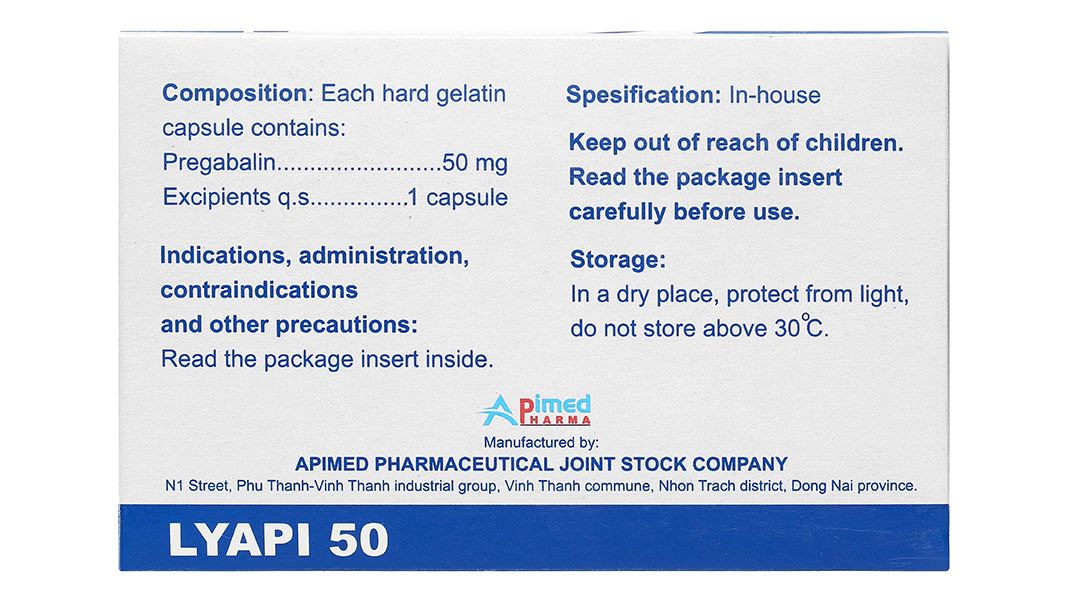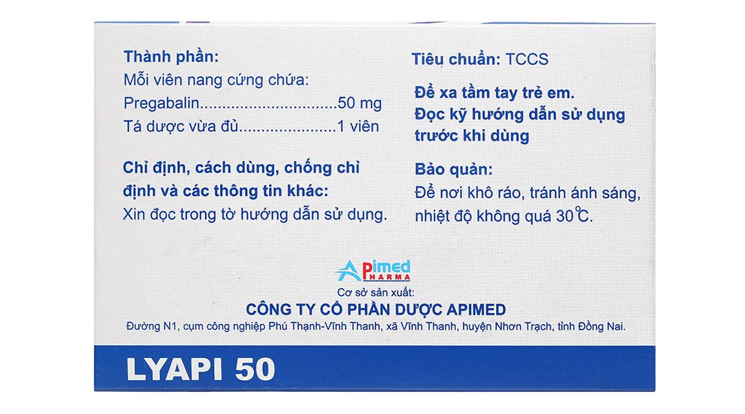 – Thận trọng khi sử dụng– Bệnh nhân đái tháo đường. Một số bệnh nhân đái tháo đường tăng cân cần phải điều chỉnh các thuốc hạ đường huyết khi điều trị với pregabalin. – Phản ứng quá mẫn. Pregabalin nên ngưng ngay lập tức nếu xảy ra các triệu chứng phù mạch, như mặt, quanh miệng, hoặc sưng đường hô hấp trên. – Chóng mặt, buồn ngủ, mất ý thức, nhầm lẫn, và suy giảm tinh thần. Pregabalin có liên quan đến chóng mặt và buồn ngủ. Cũng đã có các báo cáo của mất ý thức, lú lẫn và suy giảm tinh thần. Do đó, bệnh nhân nên thận trọng cho đến khi họ đã quen thuộc với những ảnh hưởng tiềm ẩn của thuốc. – Các ảnh hưởng liên quan đến thị giác. Trong các thử nghiệm được kiểm soát, một tỷ lệ cao hơn bệnh nhân điều trị với pregabalin được báo cáo giảm thị giác so với các bệnh nhân được điều trị với giả dược, các triệu chứng này phần lớn tự khỏi với liều tiếp tục. Trong các nghiên cứu lâm sàng được tiến hành thử nghiệm nhãn khoa, tỷ lệ giảm thị lực và thay đổi thị trường ở các bệnh nhân được điều trị với pregabalin là lớn hơn so với giả dược, tỷ lệ thay đổi võng mạc là lớn hơn ở bệnh nhân được điều trị với giả dược. Các phản ứng bất lợi về thị giác cũng đã được báo cáo, bao gồm mất thị giác, mờ hoặc thay đổi thị lực, đa số là thoáng qua. Ngưng pregabalin có thể làm hồi phục hoặc cải thiện các triệu chứng về thị giác. – Suy thận. Các trường hợp suy thận đã được báo cáo và trong một số trường hợp ngừng pregabalin đã cho thấy phục hồi phản ứng bất lợi này. – Cai các thuốc chống động kinh đồng thời. Không đủ dữ liệu cho thấy việc cai các thuốc chống động kinh đồng thời, khi kiểm soát động kinh với pregabalin trong tình trạng bổ sung đã đạt, để đạt được đơn trị liệu với pregabalin. – Triệu chứng cai thuốc. Các triệu chứng cai thuốc sau khi ngừng điều trị ngắn hạn và dài hạn với pregabalin đã được ghi nhận trong một số bệnh nhân. Những biến cố sau đây đã được đề cập: Mất ngủ, nhức đầu, buồn nôn, lo lắng, tiêu chảy, hội chứng cúm, căng thẳng, trầm cảm, đau, co giật, tăng tiết mồ hôi và chóng mặt. Bệnh nhân nên được thông báo điều này khi bắt đầu điều trị. Co giật, bao gồm trạng thái động kinh, động kinh cơn lớn, có thể xảy ra trong quá trình sử dụng pregabalin hoặc ngay sau khi ngưng pregabalin. Liên quan đến ngừng điều trị lâu dài của pregabalin không có dữ liệu về tỷ lệ mắc và mức độ nghiêm trọng của triệu chứng cai thuốc liên quan đến thời gian và liều sử dụng của pregabalin. – Suy tim sung huyết. Đã có các báo cáo của suy tim sung huyết ở một số bệnh nhân điều trị với pregabalin. Những phản ứng này chủ yếu ở bệnh nhân cao tuổi có tổn thương tim mạch trong quá trình điều trị pregabalin cho chỉ định đau thần kinh. Pregabalin nên được sử dụng thận trọng ở những bệnh nhân này. Ngưng pregabalin có thể giải quyết phản ứng. – Điều trị đau thần kinh trung ương do tổn thương tủy sống Trong điều trị đau thần kinh trung ương do tổn thương tủy sống, tỷ lệ phản ứng bất lợi nói chung, các phản ứng bất lợi trên hệ thần kinh trung ương và đặc biệt là buồn ngủ đã tăng lên. Điều này có thể là do một hiệu ứng phụ do dùng đồng thời các thuốc (ví dụ như thuốc chống co thắt) cần thiết cho tình trạng này. Nên cân nhắc khi chỉ định pregabalin trong tình trạng này. – Ý nghĩ và hành vi tự sát. Ý nghĩ và hành vi tự sát đã được báo cáo ở những bệnh nhân được điều trị với các thuốc chống động kinh trong nhiều chỉ định. Một phân tích meta của các nghiên cứu ngẫu nhiên có đối chứng với giả dược của các thuốc chống động kinh cũng cho thấy có một nguy cơ gia tăng nhẹ nguy cơ của ý nghĩ và hành vi tự sát. – Giảm chức năng đường tiêu hóa dưới. Có các báo cáo về các biến cố liên quan đến giảm chức năng đường tiêu hóa dưới (ví dụ, tắc ruột, liệt ruột, táo bón) khi điều trị phối hợp pregabalin với các thuốc có khả năng gây táo bón, như thuốc giảm đau opioid. Khi sử dụng kết hợp pregabalin và opioid nên xem xét các biện pháp phòng ngừa táo bón (đặc biệt là ở bệnh nhân nữ và người già). – Khả năng lạm dụng. Các trường hợp lạm dụng đã được báo cáo. Cần thận trọng ở những bệnh nhân có tiền sử lạm dụng thuốc và bệnh nhân nên được theo dõi các triệu chứng của lạm dụng pregabalin. – Bệnh não. Các trường hợp bệnh não đã được báo cáo, chủ yếu là ở những bệnh nhân với điều kiện cơ bản mà có thể thúc đẩy bệnh lý não. – Không dung nạp Lactose. LYAPI chứa lactose monohydrat. Bệnh nhân có vấn đề về di truyền hiếm không dung nạp galactose, khiếm khuyết lactase Lapp hoặc kém hấp thu glucose-galactose không nên dùng thuốc này. – Thai kỳ và cho con bú– Thời kỳ mang thai: Không có dữ liệu đầy đủ về vi