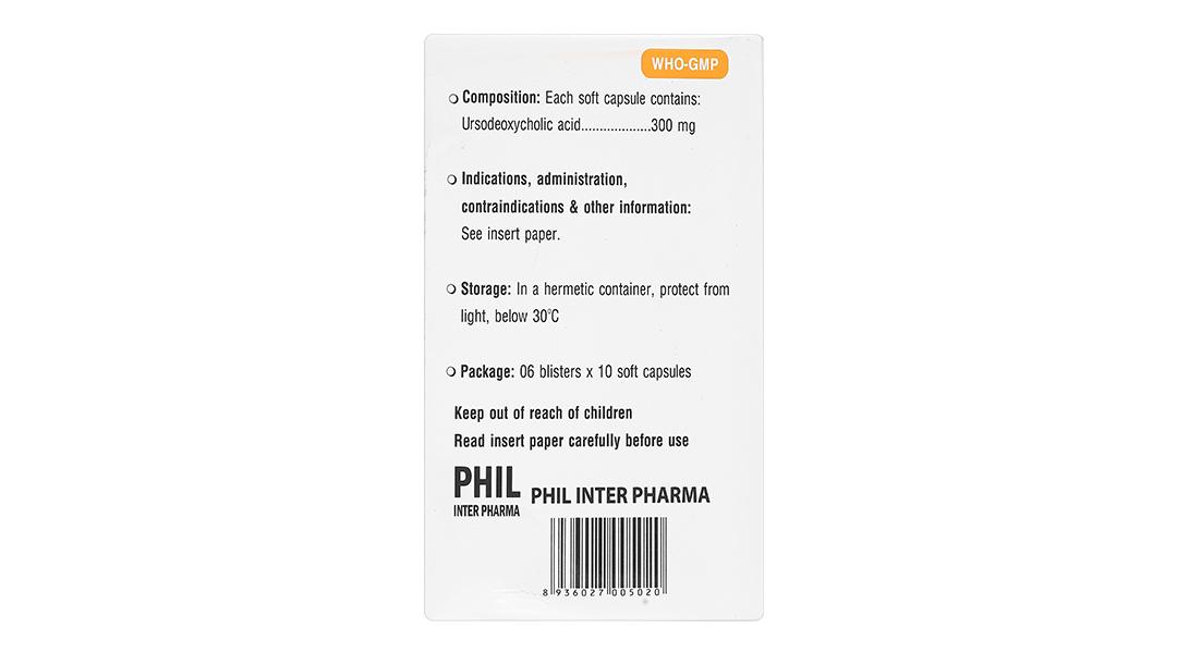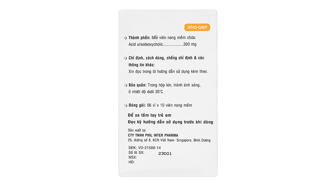 - Hoạt chất: Acid ursodeoxycholic 300 mg.