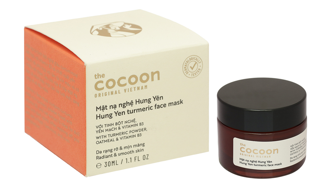 Mặt nạ gel nghệ Hưng Yên Cocoon với thành phần từ tinh bột nghệ giàu Curcuminoid kết hợp với Vitamin B3 và chiết xuất yến mạch rất phù hợp cho làn da xỉn màu và có nhiều vết thâm. Sau khi rửa đi lớp mặt nạ, bạn sẽ nhìn thấy một làn da tươi mới, sáng rạng rỡ và đều màu.