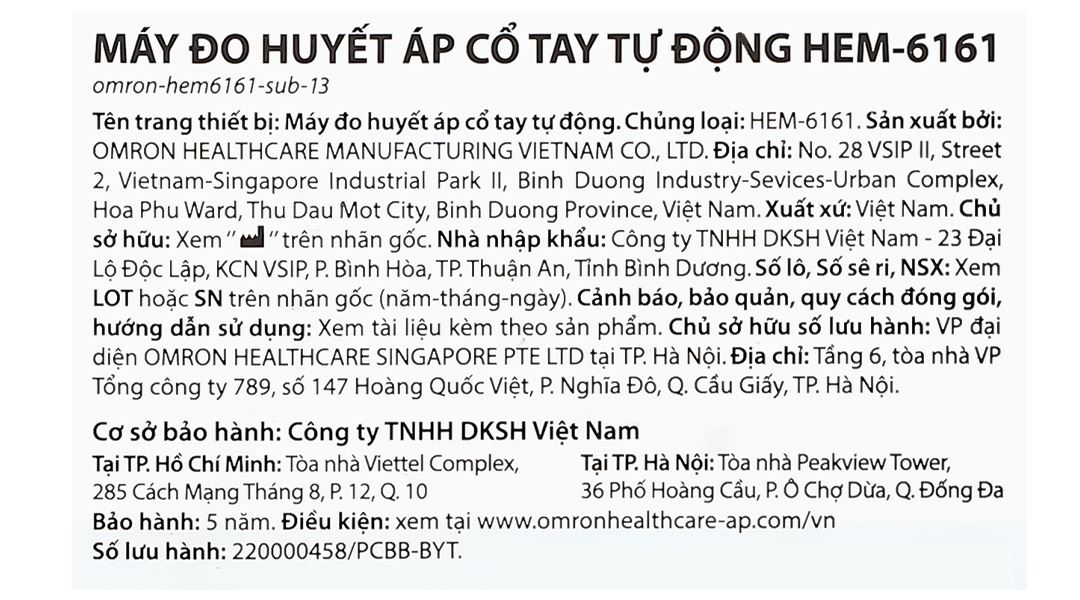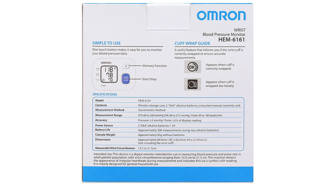 Máy đo huyết áp cổ tay tự động Omron Hem-6161
