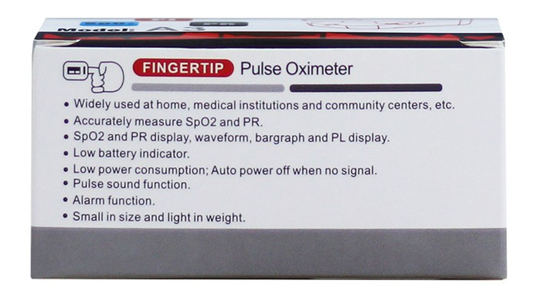 - Máy đo nồng độ oxy trong máu SPO2 Fingertip Pulse Oximeter Oromi A3 là một thiết bị, dụng cụ y tế điện tử được sử dụng để đo mức độ oxy hóa của máu trong cơ thể.