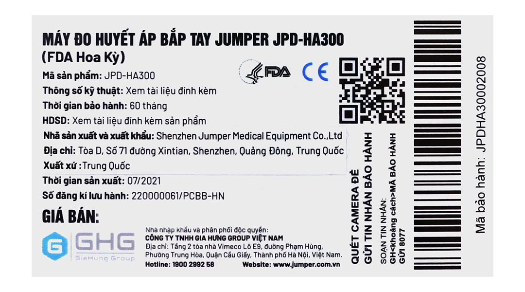 File chi tiết hướng dẫn sử dụng của Máy đo huyết áp bắp tay JUMPER JPD-HA300 tại đây.