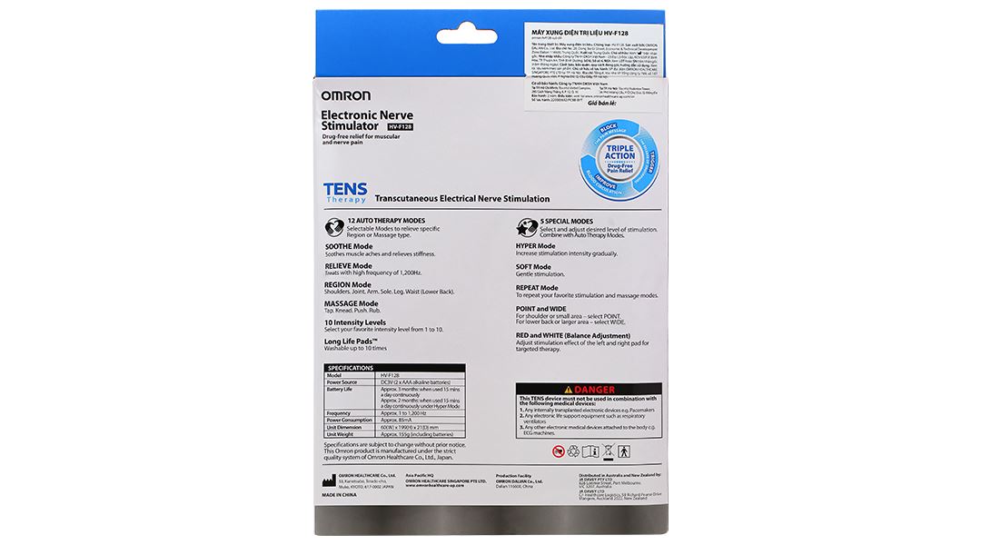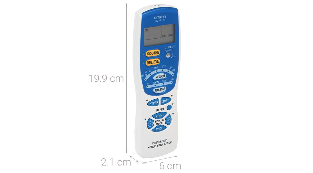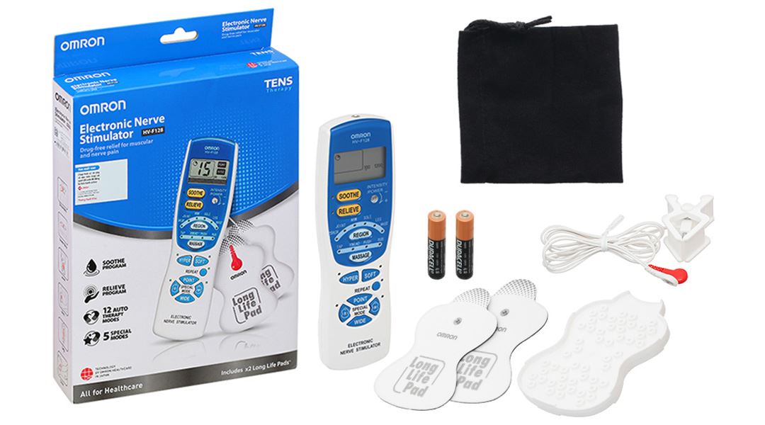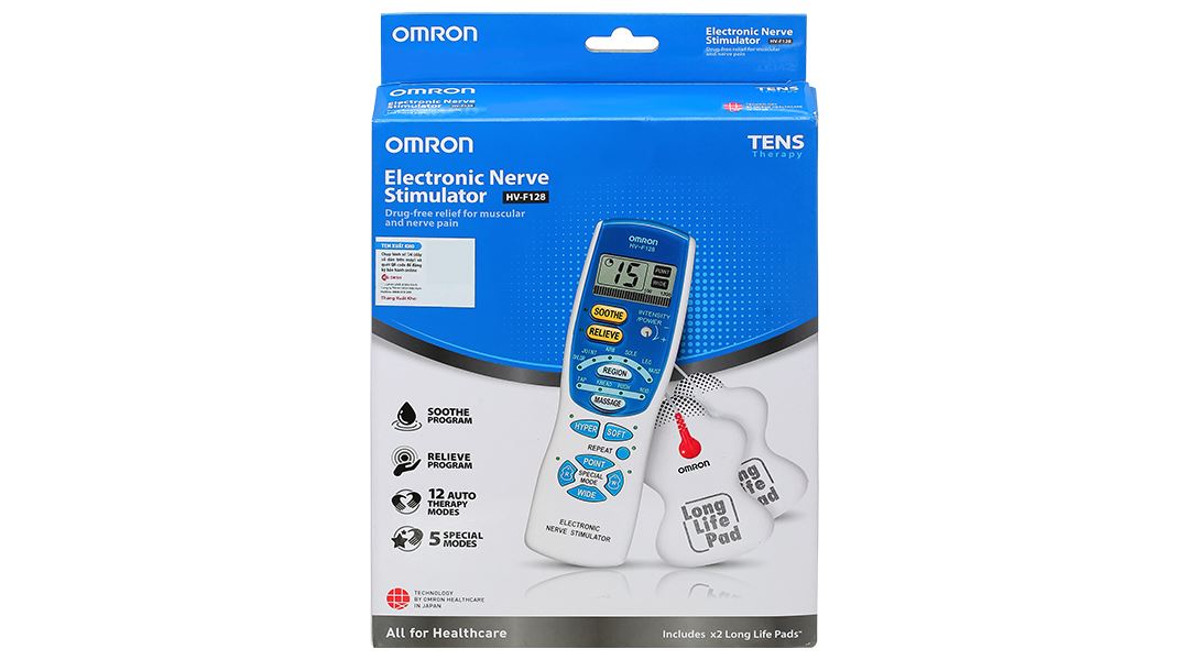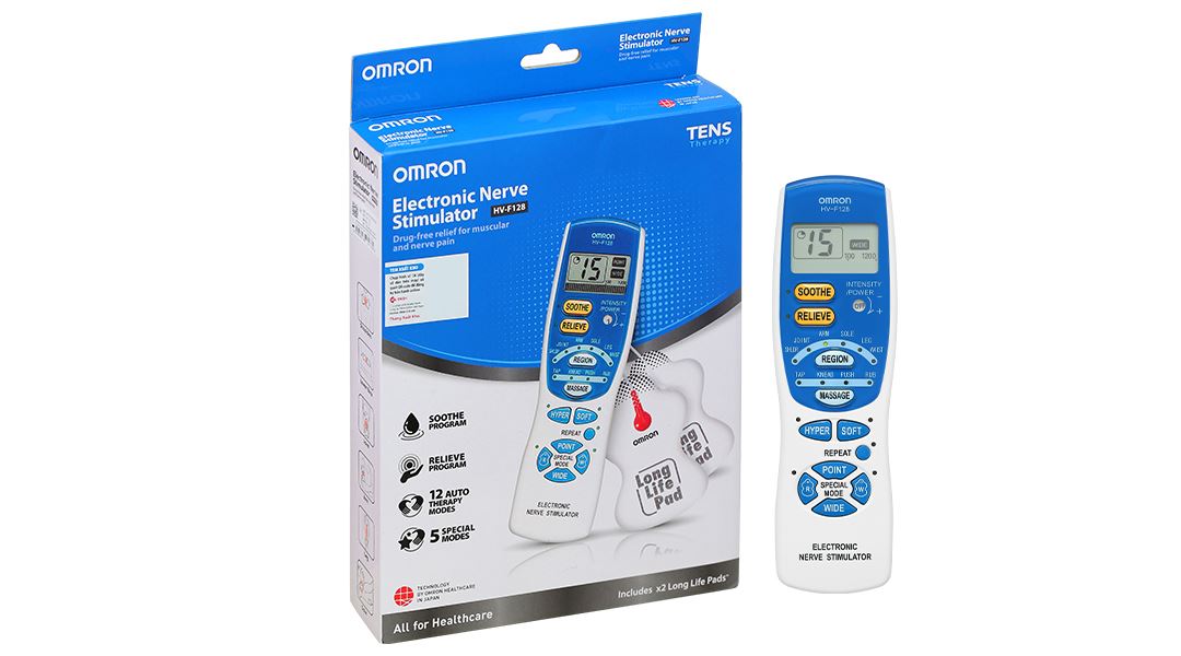 Máy xung điện Omron HV-F128 sử dụng công nghệ TENS (Xung điện trị liệu kích thích thần kinh) đã được kiểm nghiệm lâm sàng có khả năng kiểm soát các cơn đau qua các cơ chế: