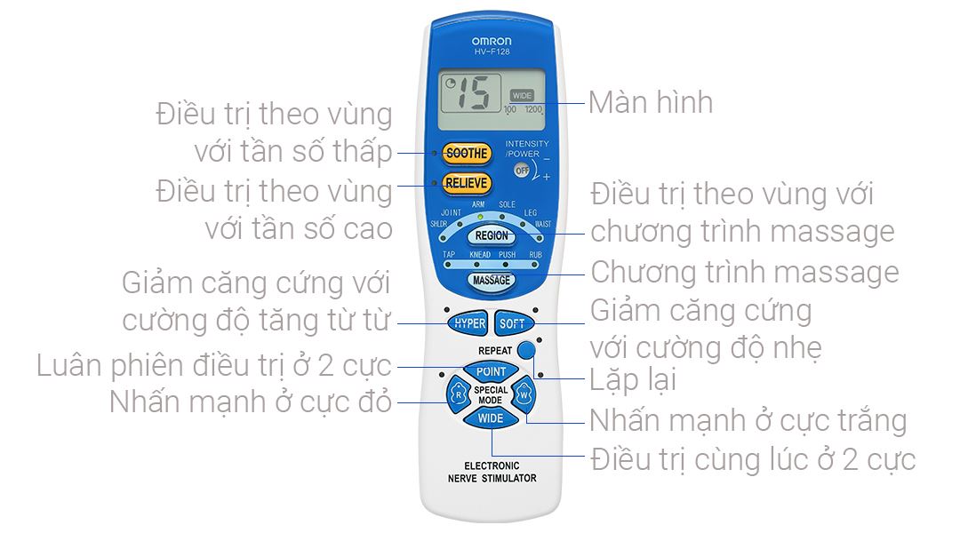 - Điều trị với phím RELIEVE: Khi bạn muốn giảm đau nhanh.