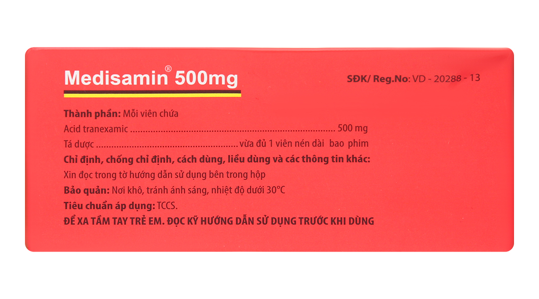 Acid tranexamic được hấp thu từ đường tiêu hóa, đạt nồng độ cao nhất trong huyết tương sau khoảng 3 giờ. Sinh khả dụng của thuốc khoảng 30-50%. Thuốc phân bố rộng trong cơ thể, gắn rất ít vào protein huyết tương (3%).