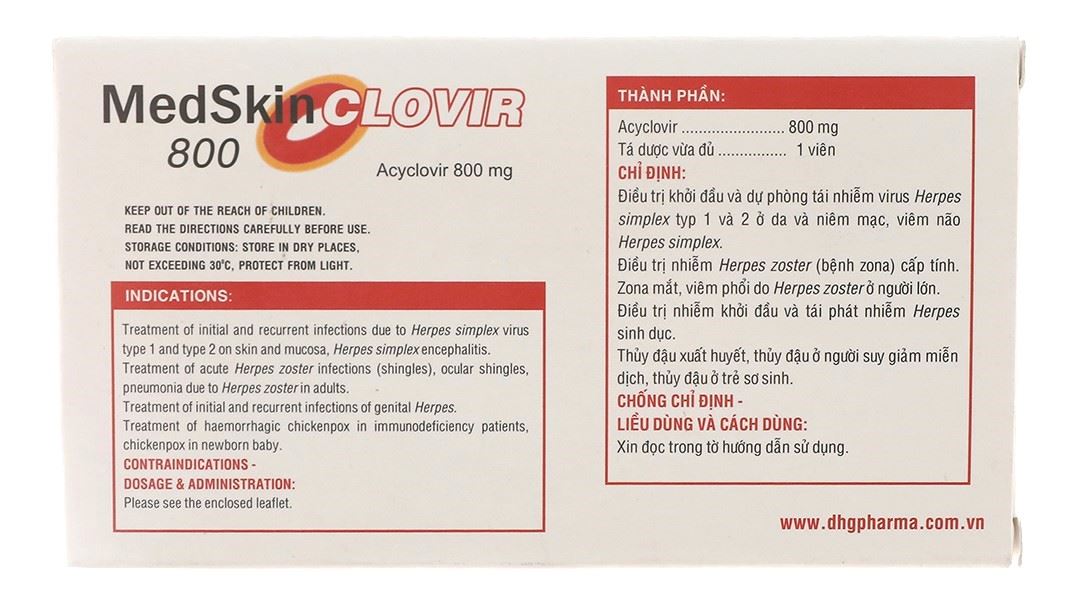 Điều trị khởi đầu và dự phòng tái nhiễm virus Herpes simplex type 1 và 2 ở da và niêm mạc, viêm não Herpes simplex.