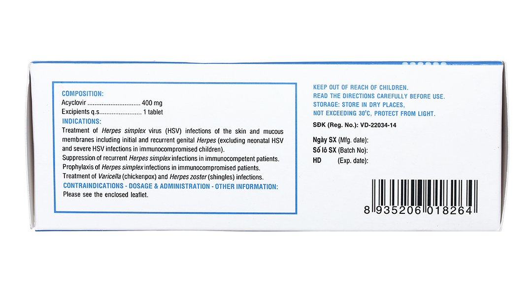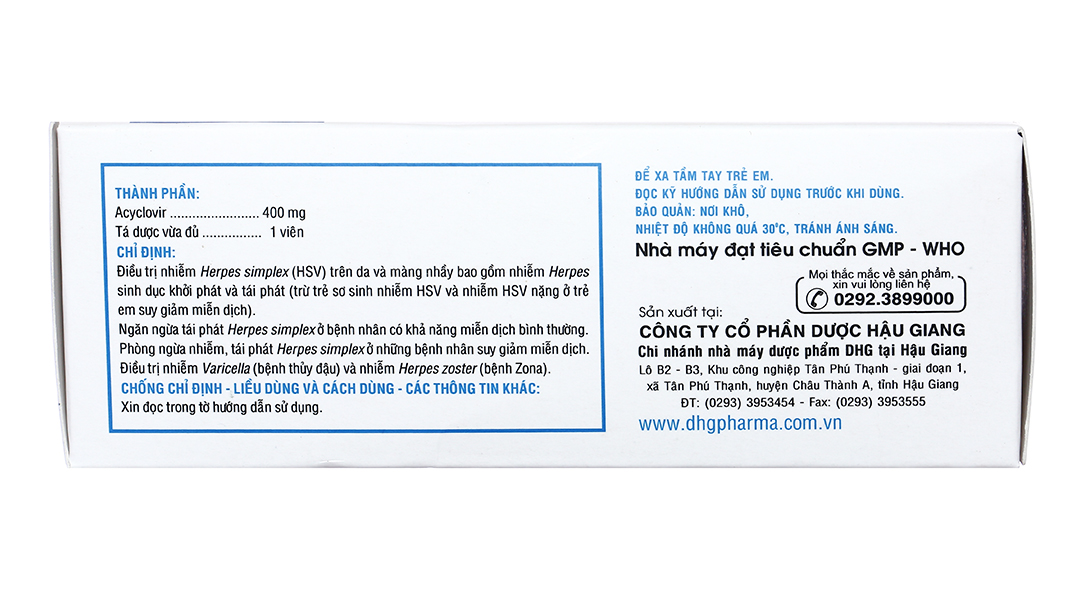 Điều trị Herpes Zoster: uống 800 mg x 5 lần/ ngày, trong 7-10 ngày.