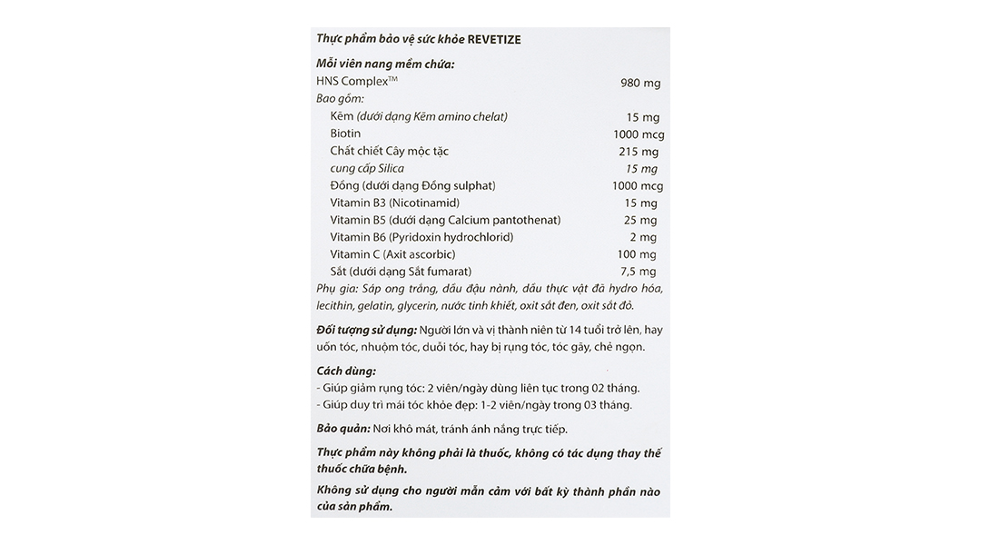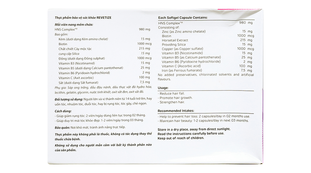 Revetize làm đẹp, kích thích mọc tóc hộp 30 viên