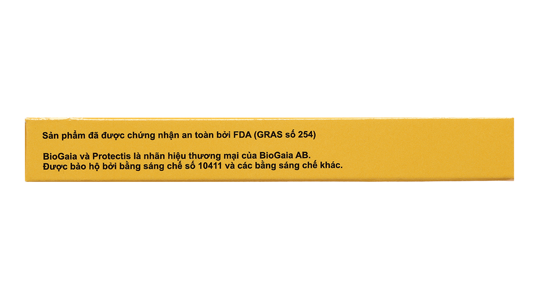 100 triệu tế bào lợi khuẩn sống Lactobacillus reuteri DSM 17938 (L. reuteri protectis), chất độn (isomalt), chất tạo ngọt tự nhiên (xylitol), chất kết dính (tinh dầu cọ), hương liệu giống tự nhiên (hương dâu) và chất điều vị (acid citric).