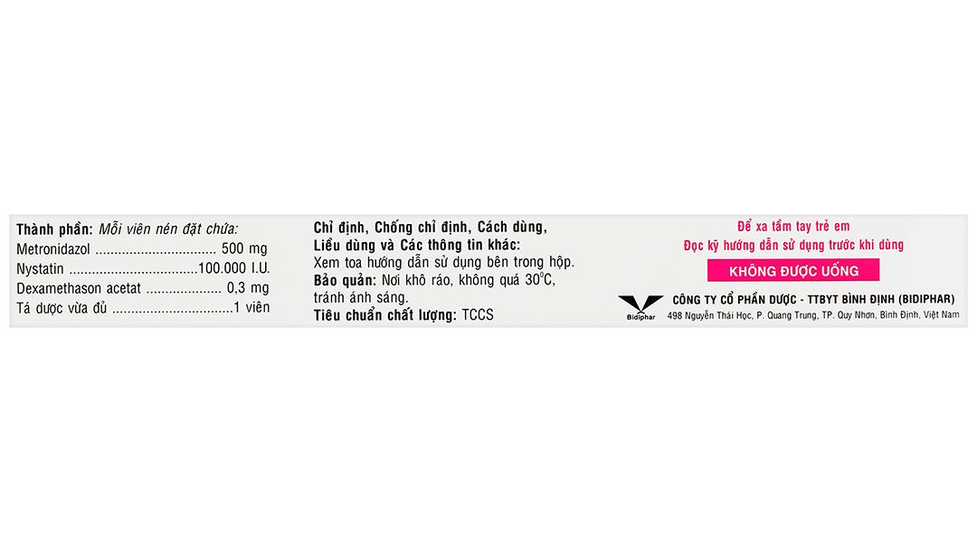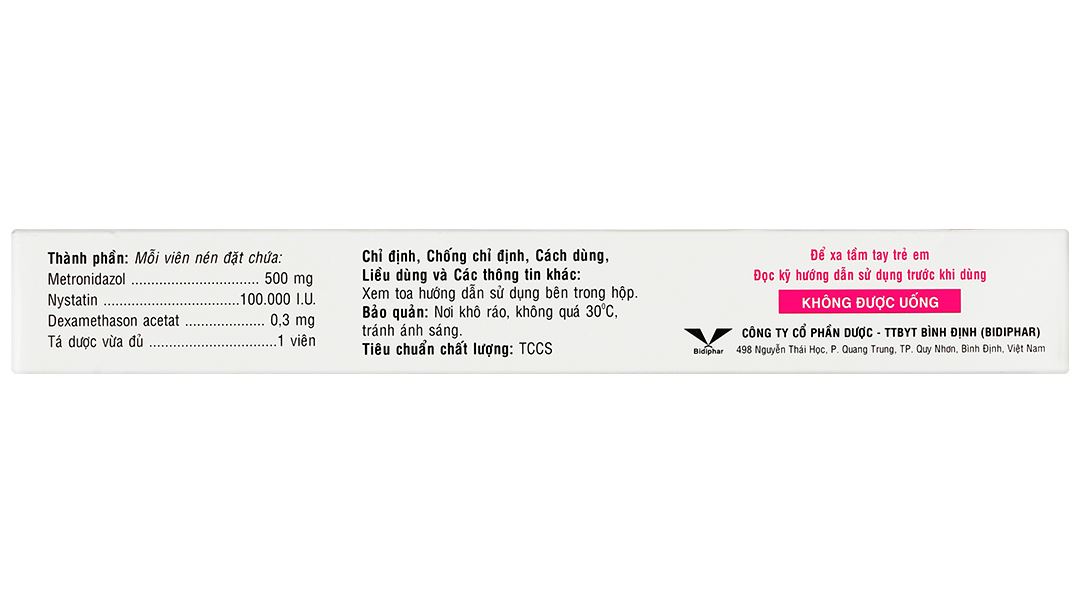 - Dạng bào chế: Viên nén đặt âm đạo.
