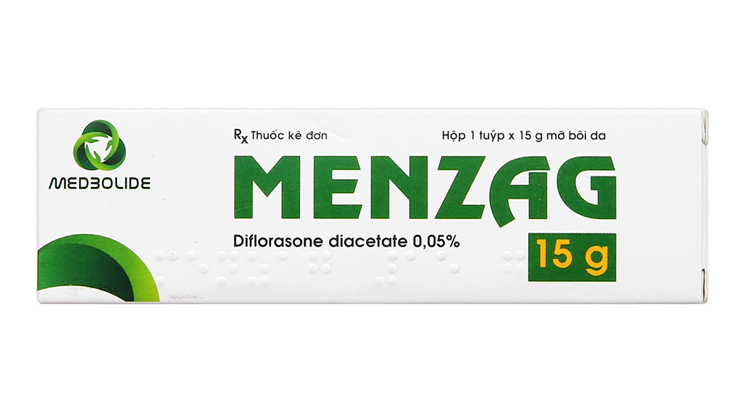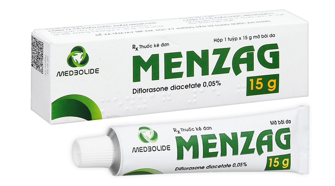 Menzag chứa dược chất diflorason diacetat thuộc nhóm corticosteroid, đường dùng tại chỗ. Thuốc được dùng để làm giảm tình trạng viêm và ngứa của bệnh da liễu có đáp ứng với corticosteroid ở người trưởng thành.