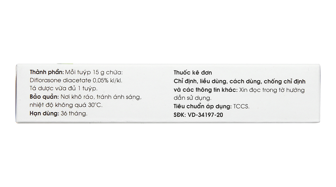 - Thành phần dược chất: Diflorason diacetat 0.05% w/w.