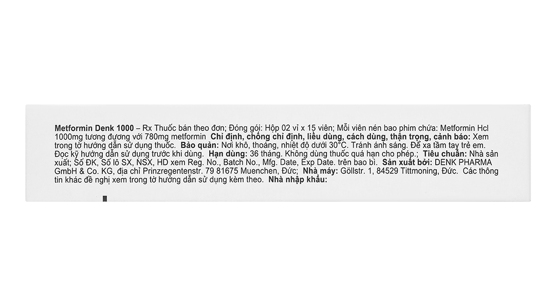 – Thai kỳ và cho con búPhụ nữ có thai Cho đến nay, không có các dữ liệu dịch tễ liên quan. Các nghiên cứu trên sinh vật không phát hiện các tác dụng độc hại cho người có thai, sự phát triển phôi và bào thai, sự sinh đẻ hoặc sự phát triển của trẻ sơ sinh. Các bệnh nhân mắc đái tháo đường đang có thai hoặc sẽ có thai không được điều trị với metformin hydroclorid. Cần dùng insulin để duy trì nồng độ đường trong máu gần bình thường nếu có thể để giảm rủi ro khiếm khuyết cho bào thai do nồng độ glucose bất thường trong máu. Phụ nữ cho con bú Metformin chuyển qua sữa khi thử trên chuột cống cho con bú. Không có các dữ liệu tương tự trên người và cần phải quyết định liệu là ngừng cho con bú hay ngừng dùng thuốc metformin hydroclorid cần phải tính tới tầm quan trọng của thuốc đối với sức khỏe của bà mẹ. – Khả năng lái xe và vận hành máy mócDùng Metformin Denk 1000 riêng rẽ không gây ra hạ đường huyết và do đó, không có ảnh hưởng đến khả năng lái xe và sử dụng máy. Tuy vậy, cần phải cảnh báo cho bệnh nhân về rủi ro hạ đường huyết khi dùng metformin hydroclorid phối hợp với các thuốc chống đái tháo khác (sulphonylurea, insulin, repaglinid). – Tương tác thuốcKhông được dùng phối hợp: Cồn