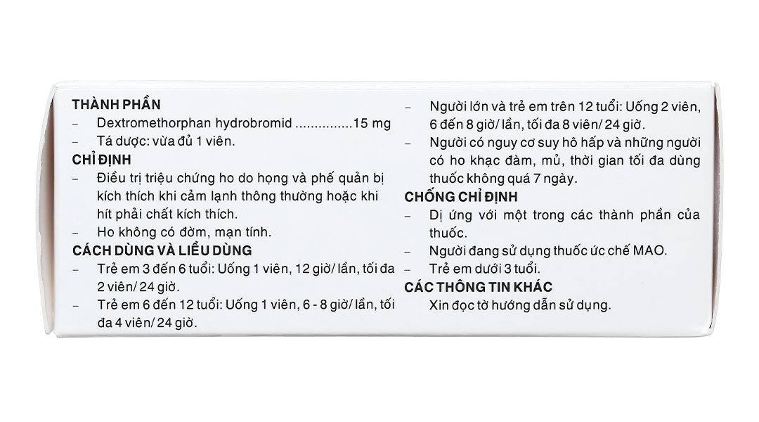 - Dextromethorphan hydrobromid 15mg.
