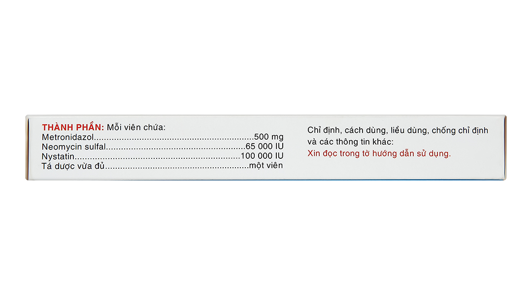 Hoạt chấtNeomycin sulfat, Nystatin, Metronidazol