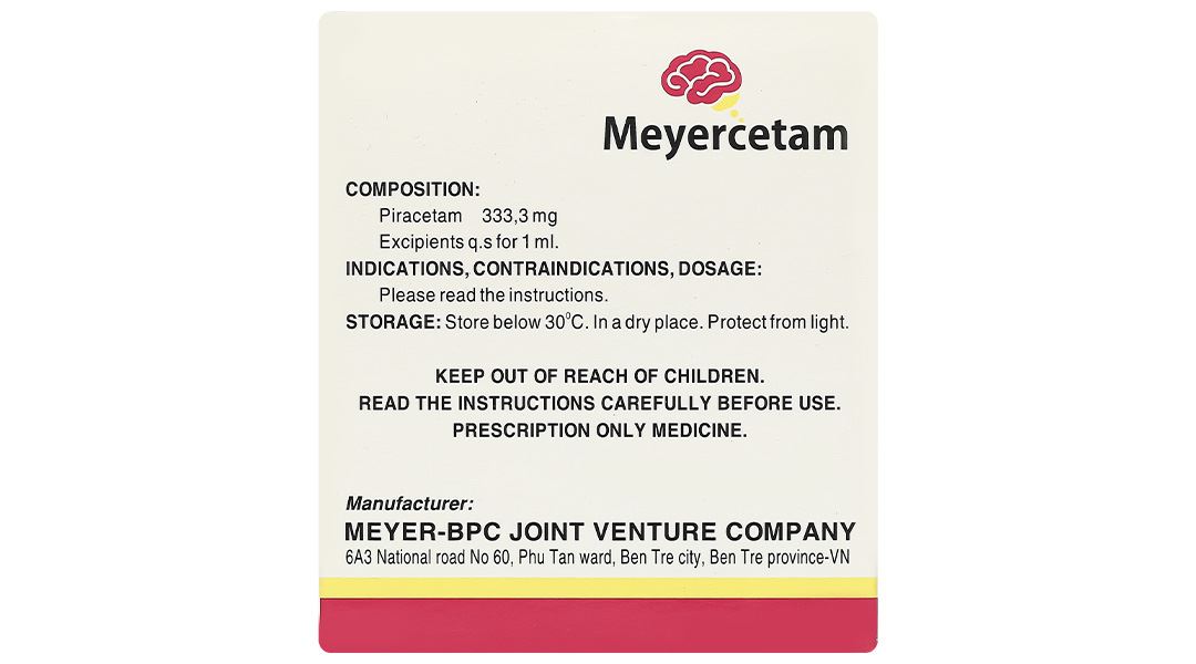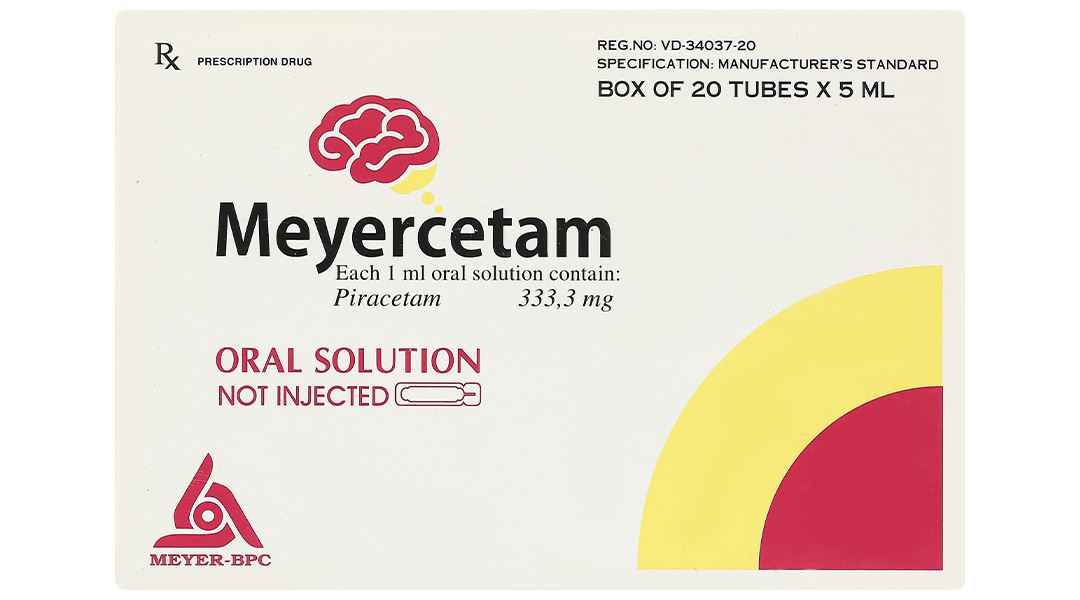 Dung dịch uống Meyercetam 333,3mg/ml điều trị giật rung cơ (20 ống x 5 ml)