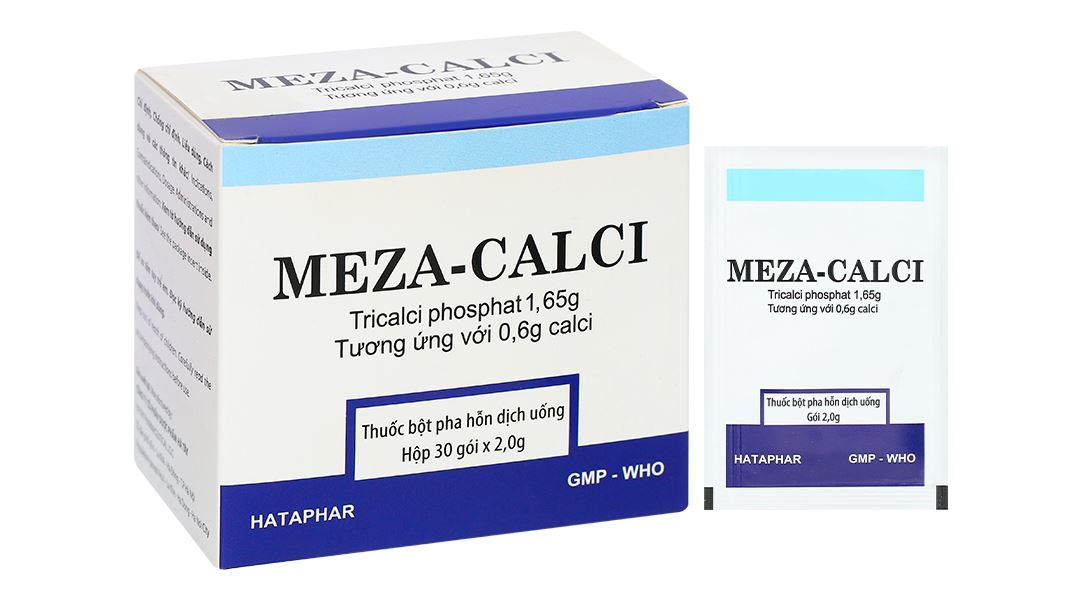 Bột pha hỗn dịch uống Meza – Calci 1,65g điều trị hỗ trợ loãng xương (30 gói x 2g)