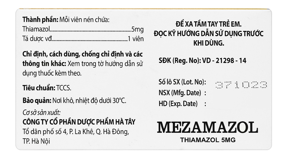 – Thành phần hoạt chất: Thiamazol 5mg.