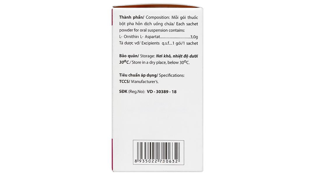 – Phụ nữ mang thai và cho con búThời kỳ mang thai Chưa có tài liệu về độ an toàn cho phụ nữ mang thai nên cần thận trọng khi dùng cho phụ nữ có thai, cân nhắc giữa nguy cơ và lợi ích điều trị và lợi ích điều trị. Thời kỳ cho con bú Chưa có tài liệu chứng minh L-ornithin L-aspartat có vào sữa mẹ hay không nên cần thận trọng khi dùng cho phụ nữ đang cho con bú, cân nhắc giữa nguy cơ và lợi ích điều trị. – Khả năng lái xe và vận hành máy mócDo các triệu chứng của bệnh và việc dùng thuốc này có thể làm giảm khả năng lái xe và vận hành máy móc nên thận trọng khi sử dụng cho những đối tượng này. – Tương tác thuốcChưa có tài liệu báo cáo. |