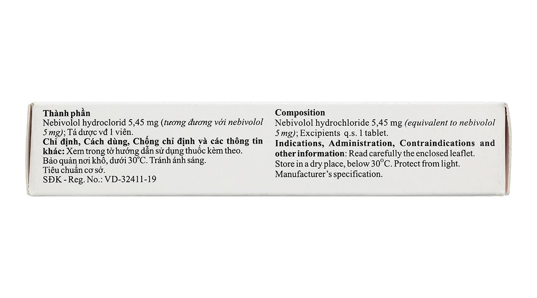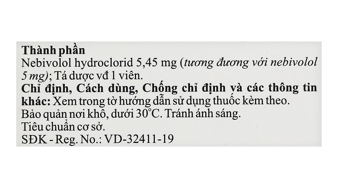 Thành phần dược chất: Nebivolol hydroclorid 5,45 mg (tương đương nebivolol 5 mg).