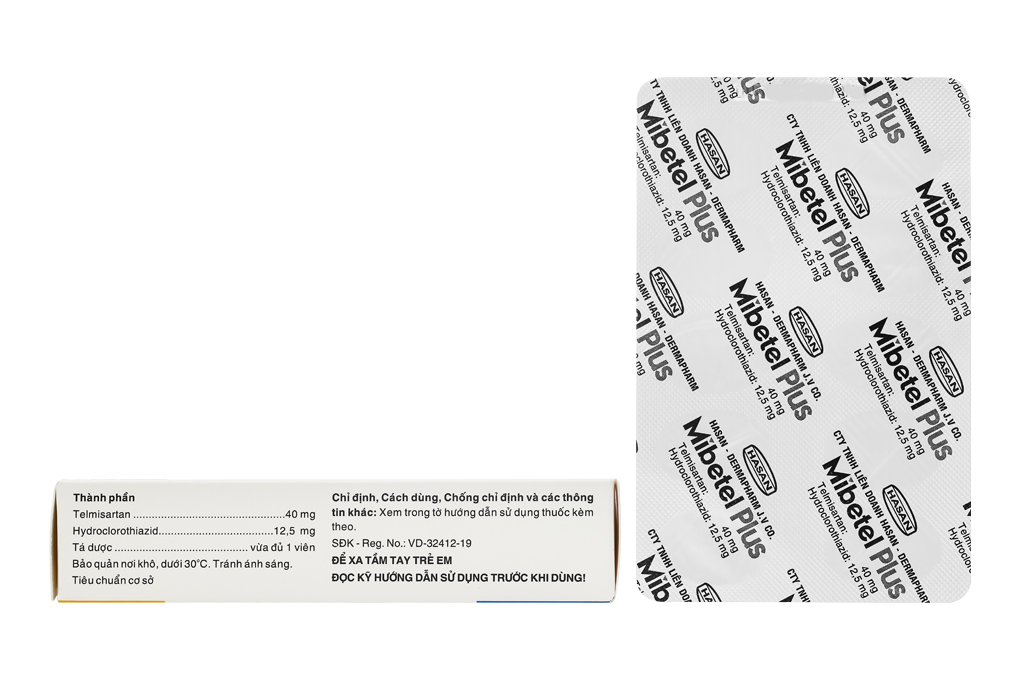 – Dạng thuốc phối hợp liều cố định MIBETEL PLUS (40 mg telmisartan/12,5 mg hydroclorothiazid) được chỉ định cho bệnh nhân không hoàn toàn kiểm soát được huyết áp nếu chỉ dùng telmisartan riêng lẻ.