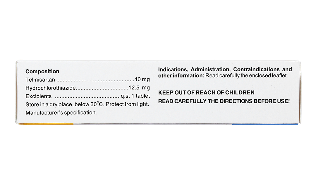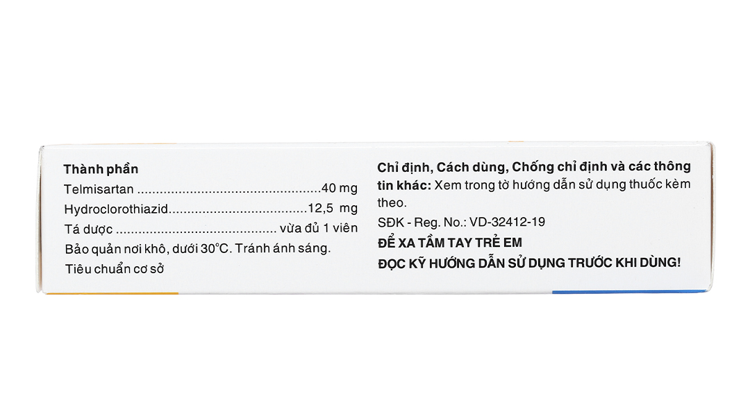 Thành phần dược chất: Telmisartan 40 mg và hydroclorothiazid 12,5 mg.