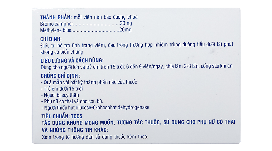 Công dụngĐiều trị hỗ trợ viêm, đau trong nhiễm trùng đường tiểu dưới tái phát không biến chứng