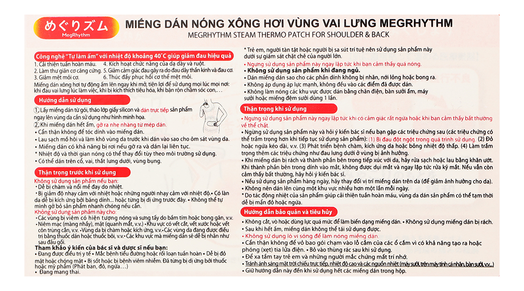 - Ngừng sử dụng miếng dán ngay lập tức khi bạn cảm thấy nó quá nóng hoặc bạn cảm thấy đau hoặc thay đổi hoặc khó chịu/bất thường về thể chất.