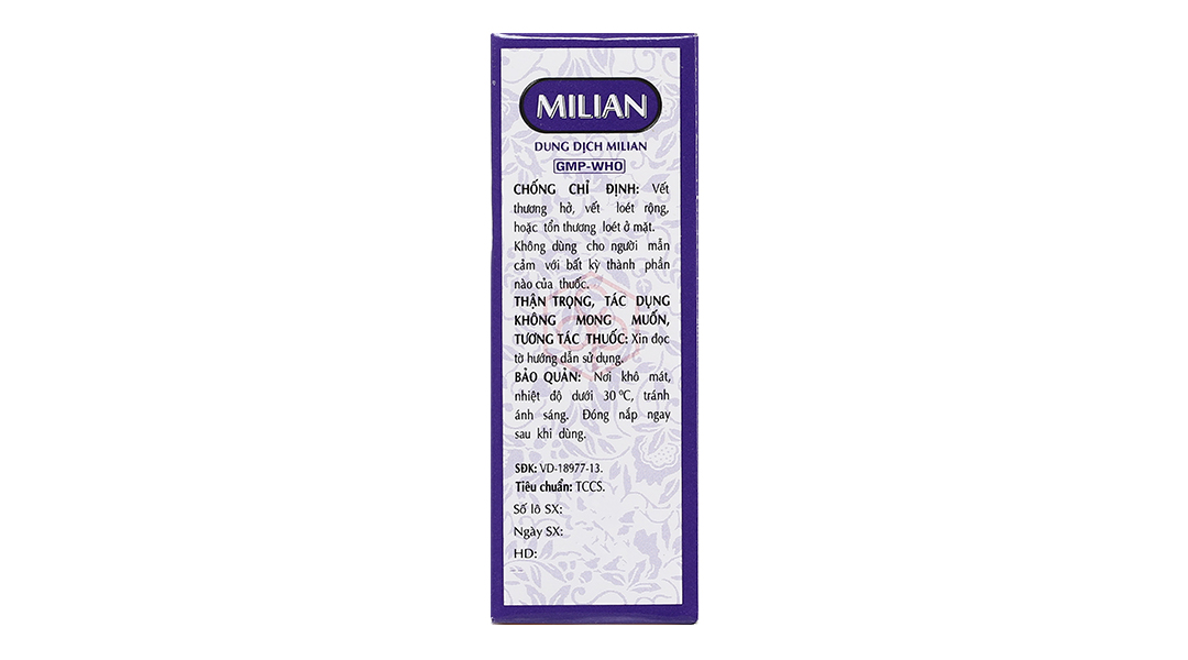 - Dung dịch MILIAN bao gồm Xanh Methylen và Tím Gentian là một thuốc sát trùng/ diệt vi sinh vật dùng để bôi ngoài da và niêm mạc.