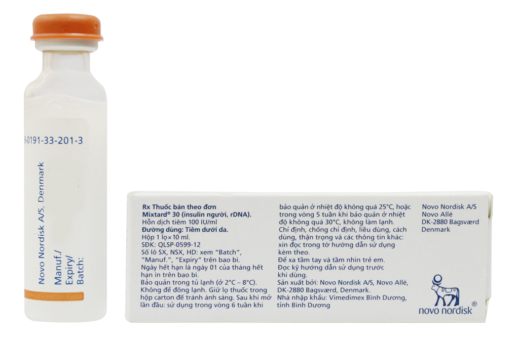 – Thận trọng khi sử dụngCảnh báo và thận trọng đặc biệt khi sử dụng Đọc kỹ hướng dẫn sử dụng trước khi dùng. Nếu cần thêm thông tin, xin hỏi y kiến bác sĩ. Thuốc này chỉ dùng theo đơn của bác sĩ. Việc điều trị không đủ liều hoặc không liên tục, đặc biệt trong đái tháo đường type 1, có thể dẫn đến tăng đường huyết. Thông thường, các triệu chứng đầu tiên của tăng đường huyết xuất hiện từ từ, kéo dài trong vài giờ hoặc vài ngày. Những triệu chứng này bao gồm khát, tiểu nhiều lần, buồn nôn, nôn, buồn ngủ, da khô đỏ, khô miệng, mất sự ngon miệng cũng như hơi thở có mùi aceton. Trong đái tháo đường type 1, các trường hợp tăng đường huyết không được điều trị cuối cùng sẽ dẫn đến nhiễm toan ceton do đái tháo đường, có khả năng gây tử vong. Hạ đường huyết Hạ đường huyết có thể xảy ra nếu liều insulin quá cao so với nhu cầu insulin. Bỏ một bữa ăn hay luyện tập thể lực gắng sức, không có kế hoạch có thể dẫn đến hạ đường huyết. Những bệnh nhân có sự kiểm soát glucose huyết được cải thiện rõ, ví dụ do liệu pháp insulin tích cực, có thể có thay đổi về những triệu chứng cảnh báo thường gặp của hạ đường huyết và nên được bác sĩ thông báo trước. Những triệu chứng cảnh báo thường gặp có thể mất đi ở những bệnh nhân bị bệnh đái tháo đường đã lâu. Khi chuyển bệnh nhân sang sử dụng một loại insulin khác hay nhãn hiệu insulin khác cần thực hiện dưới sự giám sát y tế chặt chẽ. Những thay đổi về nồng độ, nhãn hiệu (nhà sản xuất), loại, nguồn gốc (insulin người, chất tương tự insulin) và/hoặc phương pháp sản xuất có thể dẫn đến sự cần thiết thay đổi liều dùng. Những bệnh nhân được chuyển sang Mixtard từ một loại insulin khác có thể cần phải tăng một số mũi tiêm hàng ngày hoặc thay đổi liều của loại insulin mà họ đã sử dụng trước đó. Nếu việc điều chỉnh là cần thiết khi chuyển bệnh nhân sang sử dụng Mixtard thì có thể thực hiện ở liều đầu tiên hoặc trong vài tuần hoặc vài tháng đầu. Cũng như bất kỳ liệu pháp insulin nào khác, có thể xảy ra các phản ứng tại chỗ tiêm, bao gồm đau, đỏ, nổi mề đay, viêm, thâm tím, sưng và ngứa. Thay đổi liên tục vị trí tiêm trong một vùng tiêm nhất định có thể giúp làm giảm hoặc phòng ngừa các phản ứng này. Những phản ứng trên thường qua đi trong vài ngày đến vài tuần. Trong một số trường hợp hiếm gặp, phản ứng tại chỗ tiêm có thể đòi hỏi phải ngừng sử dụng Mixtard. Trước khi đi du lịch đến nơi có sự khác biệt về múi giờ, bệnh nhân nên tham khảo ý kiến bác sĩ, vì điều này có nghĩa là bệnh nhân phải tiêm insulin và dùng các bữa ãn vào những thời điểm khác. Không được sử dụng hỗn dịch insulin trong bơm truyền insulin. Kết hợp thiazolidinedione và các thuốc insulin Đã có báo cáo về các trường hợp suy tim sung huyết khi dụng thiazolidinedione kết hợp với insulin, đặc biệt ở những bệnh nhân có các yếu tố nguy cơ về phát triển suy tim sung huyết. Cần phải nhớ điều này nếu xem xét điều trị kết hợp thiazo-lidinedione với các thuốc insulin. Nếu sử dụng kết hợp, phải theo dõi bệnh nhân về các dấu hiệu và triệu chứng của suy tim sung huyết, tăng cân và phù. Phải ngừng sử dụng thiazo-lidinedione nếu xảy ra bất kỳ triệu chứng nào về tim xấu đi. Khi đang sử dụng, hạn dùng là 6 tuần khi bảo quản dưới 25°C hoặc 5 tuần khi bảo quản dưới 30°C. – Thai kỳ và cho con búKhông có sự hạn chế về việc điều trị đái tháo đường bằng insulin trong thời kỳ mang thai, vì insulin không qua hàng rào nhau thai. Cả hạ đường huyết và tăng đường huyết có thể xảy ra trong trường hợp điều trị kiểm soát bệnh đái tháo đường không đầy đủ, đều có thể làm tăng nguy cơ thai dị tật và thai chết lưu trong tử cung. Khuyến cáo tăng cường kiểm soát glucose huyết và theo dõi các phụ nữ mang thai bị đái tháo đường trong suốt thai kỳ và khi dự định mang thai. Nhu cầu insulin thường giảm trong 3 tháng đầu thai kỳ và sau đó tăng lên trong 3 tháng giữa và 3 tháng cuối thai kỳ. Sau khi sinh, nhu cầu insulin thường nhanh chóng trở lại các trị số như trước khi mang thai. Không có hạn chế về việc điều trị bằng Mixtard trong thời kỳ cho con bú. Việc điều trị bằng insulin cho các bà mẹ cho con bú không có nguy cơ gì cho bé. Tuy nhiên, có thể cần phải điều chỉnh liều Mixtard, chế độ ăn hoặc cả hai. – Khả năng lái xe và vận hành máy mócKhả năng tập trung và phản ứng của bệnh nhân có thể bị suy giảm do hậu quả của hạ đường huyết. Điều này có thể gây ra nguy hiểm trong những tình huống mà những khả năng này có tầm quan trọng đặc biệt (như đang lái xe hay đang vận hành máy móc). Bệnh nhân nên được nhắc nhở để thận trọng tránh tình trạng hạ đường huyết trong khi lái xe. Điều này đặc biệt quan trọng ở những bệnh nhân bị giảm hay k