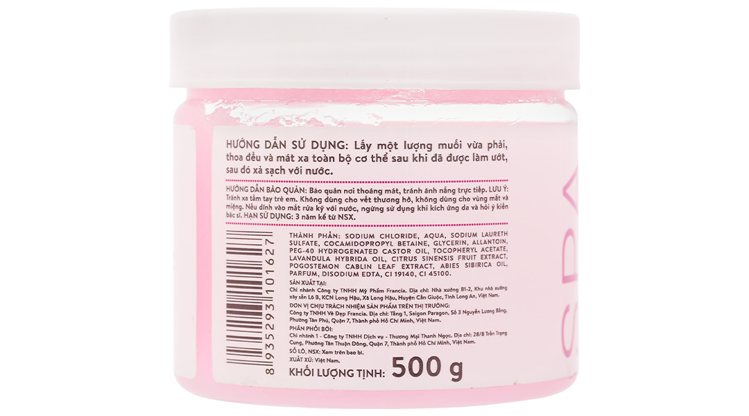Hạt muối hồng Himalaya tự nhiên giúp tẩy tế bào chết body khô sần, còn được dưỡng ẩm tăng cường nhờ dầu hoa Oải ương mang lại một làn da sáng mịn và mềm mại như được chăm sóc tại Spa.