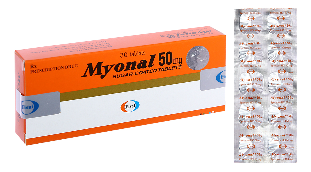– Thận trọng khi sử dụngThận trọng chung Một vài trường hợp có thể có cảm giác mệt mỏi, nhức đầu nhẹ hoặc ngủ gà do dùng thuốc. Nên giảm liều hoặc ngưng thuốc khi thấy dấu hiệu đầu tiên của các triệu chứng đó. Trong thời gian dùng thuốc, không nên làm các công việc đòi hỏi sự tập trung cao như lái xe hoặc vận hành máy móc dễ gây tai nạn. Thận trọng khi dùng thuốc: Đối với bệnh nhân rối loạn chức năng gan. – Thai kỳ và cho con bú(1) Độ an toàn của thuốc trong suốt quá trình mang thai chưa được biết rõ. Chỉ sử dụng thuốc cho phụ nữ mang thai hoặc nghi ngờ có thai khi lợi ích của việc dùng thuốc lớn hơn so với bất kỳ các nguy cơ nào có thể xảy ra. (2) MYONAL không được khuyên dùng ở những phụ nữ đang cho con bú. Nếu cần thiết phải dùng thuốc, bệnh nhân nên ngưng cho con bú. – Tương tác thuốcMột báo cáo có đề cập đến tình trạng rối loạn điều tiết mắt xảy ra khi dùng đồng thời methocarbamol với tolperison hydroclorid (một hợp chất có cấu trúc tương tự Eperison). Tương kỵ: Viên nén MYONAL chưa thấy xuất hiện tương kỵ với những thuốc khác. |