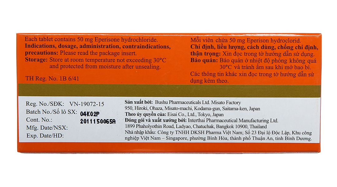 Tên hoạt chất: Eperison hydroclorid
