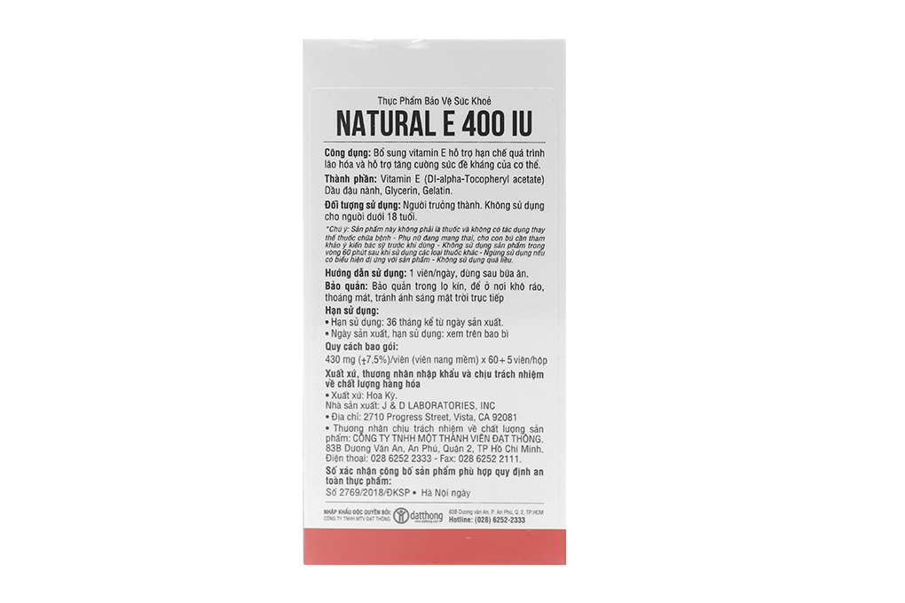 Hoạt chấtVitamin E (Dl-alpha-Tocopheryl acetate)