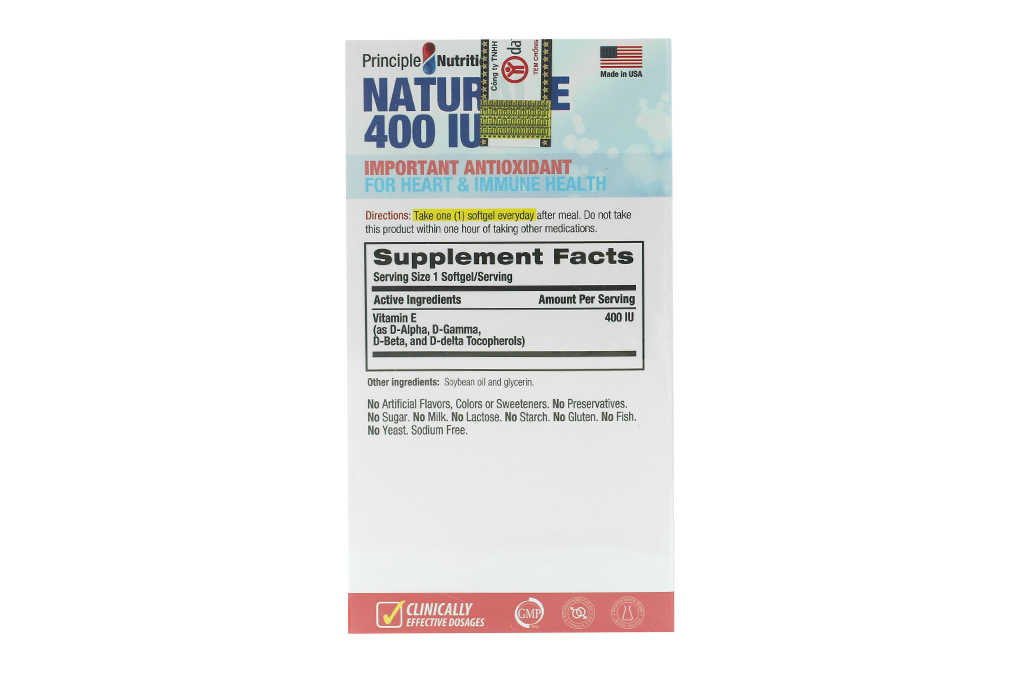 Principle Nutrition Natural E 400IU hạn chế lão hóa hộp 65 viên