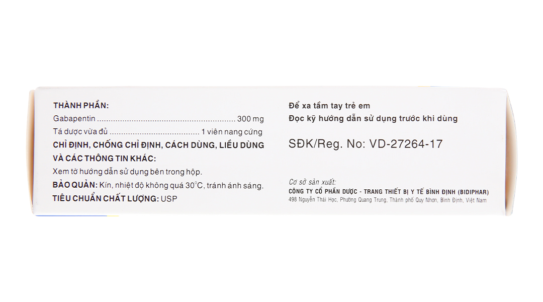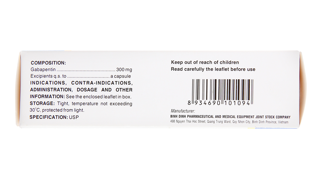 - Thành phần hoạt chất: Gabapentin 300mg.