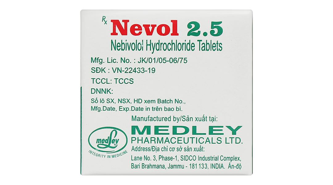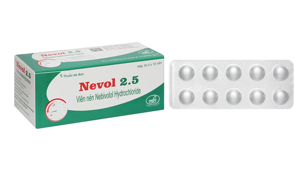 Nevol 2.5 điều trị tăng huyết áp vô căn, suy tim mạn tính (10 vỉ x 10 viên)