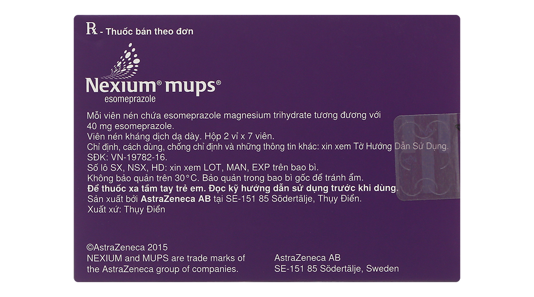 - Người ta chưa biết esomeprazole có tiết qua sữa mẹ hay không. Không có nghiên cứu nào trên phụ nữ cho con bú được thực hiện. Vì vậy, không nên dùng NEXIUM MUPS trong khi cho con bú.