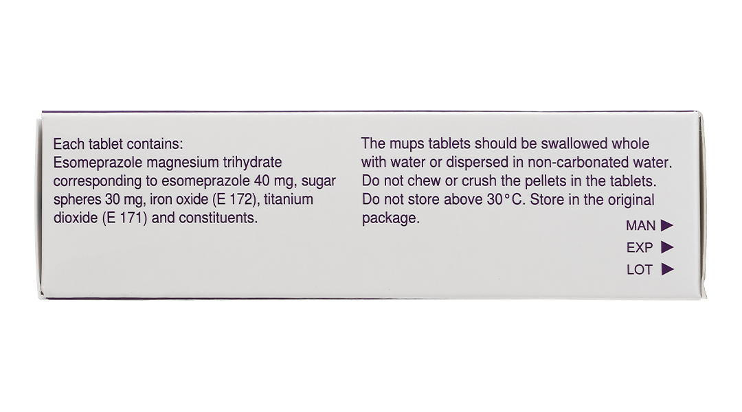 - Mỗi viên chứa 40mg esomeprazole (dưới dạng magiê trihydrate).