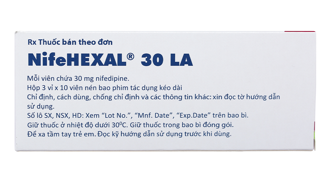 NifeHEXAL 30 LA trị tăng huyết áp, dự phòng trị đau thắt ngực (3 vỉ x 10 viên)