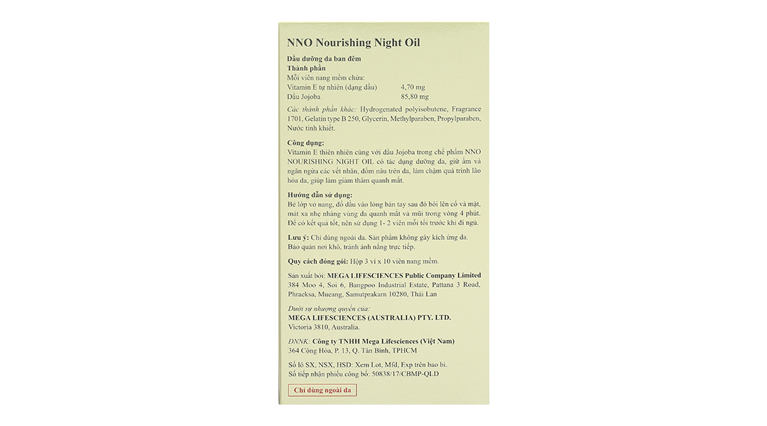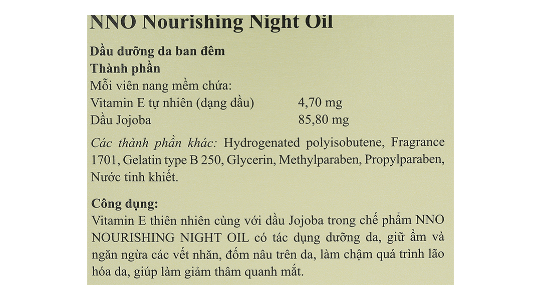 Dầu dưỡng da ban đêm NNO Nourishing giữ ẩm, ngừa nếp nhăn hộp 30 viên