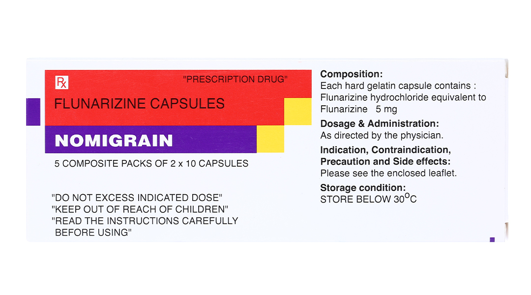 Do tác dụng an thần và/hoặc buồn ngủ xảy ra ở một số bệnh nhân trong khi dùng Nomigrain, bệnh nhân nên thận trọng đối với các hoạt động mà cần sự tỉnh táo hay các đáp ứng nhanh nhẹn và chính xác chẳng hạn như vận hành máy móc hay lái xe, cho đến khi đáp ứng với thuốc đã được xác định. Flunarize được chuyển hoá ở gan, vì vậy nên thận trọng khi sử dụng flunarizine ở những bệnh nhân bị suy gan.