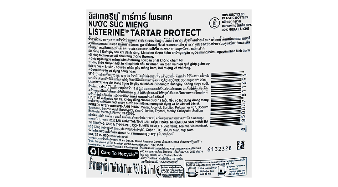 Sử dụng nước súc miệng 2 lần/ngày sau khi đánh răng, Listerine Tartar Protection được kiểm chứng chống sự hình thành mảng bám tốt hơn so với đánh răng đơn thuần.