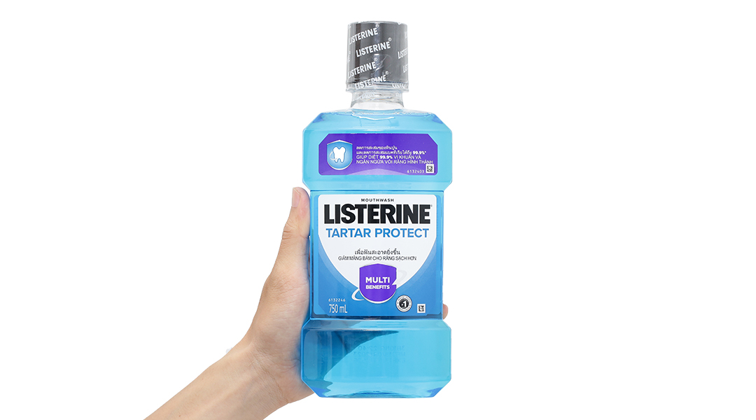 Súc miệng với 20ml Listerine không pha loãng trong 30 giây rồi bỏ đi.