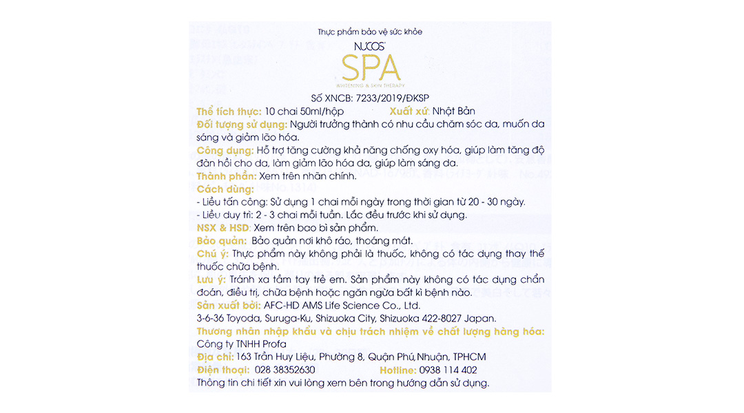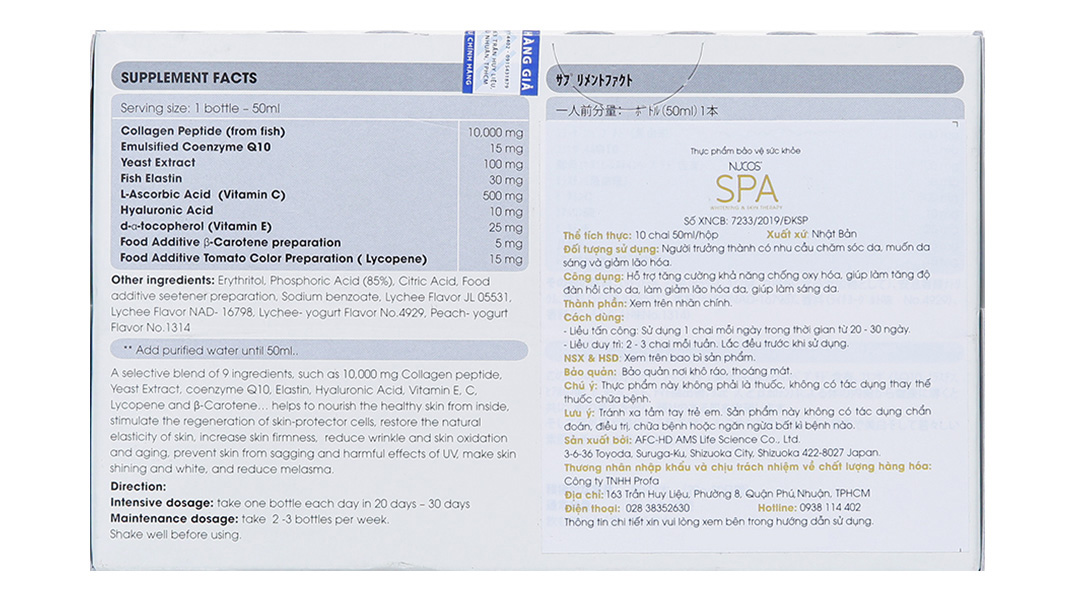 Nước uống Nucos Spa hạn chế lão hóa, làm đẹp da hộp 10 chai x 50ml