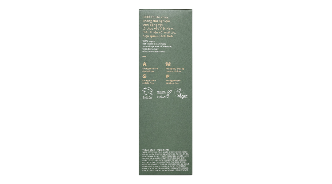 - Sản phẩm không có Sulfate, không Paraben, không chứa cồn, không dầu khoáng.