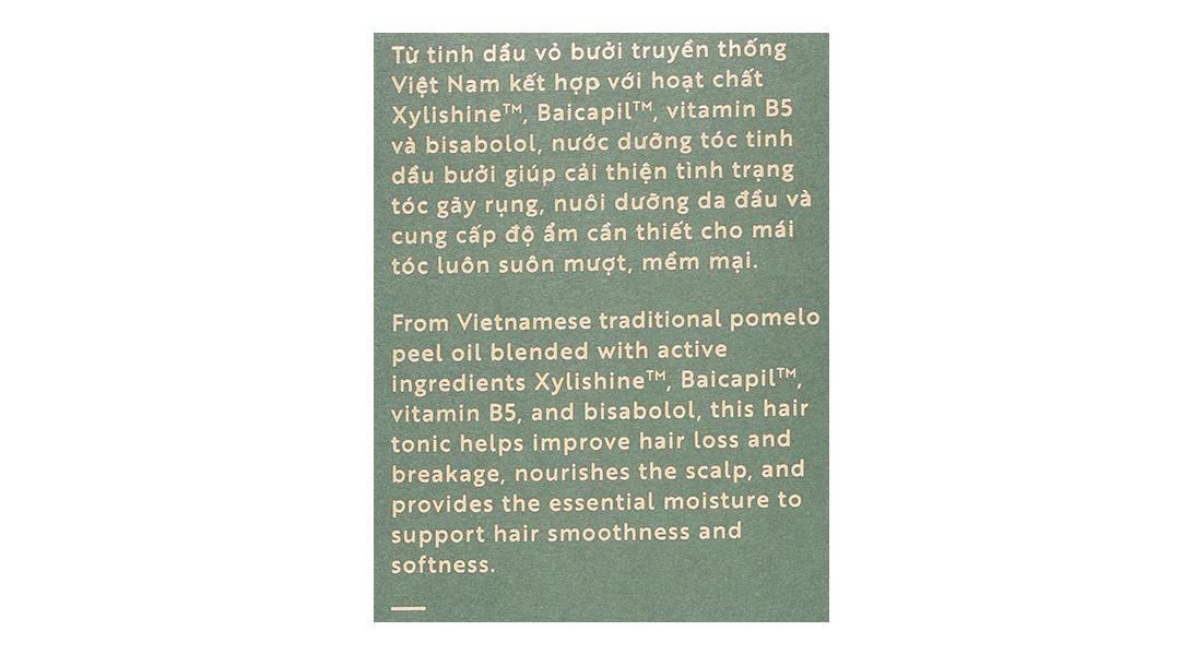 - Với các thành phần tinh dầu vỏ bưởi truyền thống Việt Nam kết hợp với hoạt chất Xylishine, Baicapil, Vitamin B5 và Bisabolol, dưỡng tóc Cocoon giúp cải thiện trình trạng tóc gãy rụng, nuôi dưỡng chân tóc và cung cấp độ ẩm cần thiết cho mái tóc luôn suôn mượt, mềm mại.